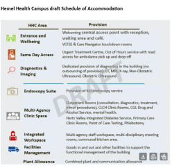 - The key points of the draft 'Schedule of Accommodation' for the Hub are here: Draft schedule of accommodation